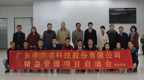 2017年12月15日,廣東某科技有限公司《精益管理I期》項目正式啟動。公司黃董事長、楊總經理、科技公司葉總、行政總監陳總、生產副總等公司高層,優制咨詢總監莫老師、咨詢師王老師及項目組30余位成員,共同出席了本次啟動會。