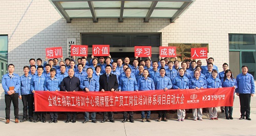 2018年2月25日,金城生物藥業(yè)集團(tuán)《職工培訓(xùn)中心揭牌暨生產(chǎn)員工崗位培訓(xùn)體系》項(xiàng)目啟動(dòng)大會(huì)順利召開,公司總經(jīng)理?xiàng)羁?、常?wù)副總經(jīng)理李總、人事行政副總焦總、優(yōu)制咨詢精益管理專家楊煜老師及項(xiàng)目組代表成員共計(jì)六十余人參會(huì)。
