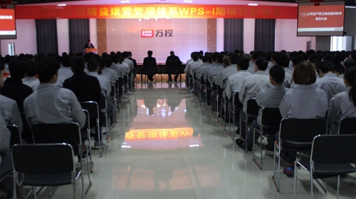 2018年3月8日,萬控電氣集團麗水公司《精益運營管理體系(WPS)I期--生產員工崗位培訓體系》項目啟動。在《我們一起來》的歌聲中,啟動會正式開始。柜體事業(yè)群總經理張總、優(yōu)制咨詢精益運營管理咨詢總監(jiān)楊老師、常務副總經理劉總、總經理助理孫特助、總經理助理兼總經辦林主任、生產單位各科室主管、項目組成員及生產員工共計四百余人參加了本次啟動大會。