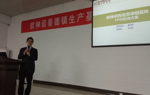 優制咨詢副總經理莫老師針對本期項目開展內容和項目管理進行了說明。莫老師說:隨著中國制造業的發展,人力成本會越來越高,且人員的招聘越來越困難,因此,生產自動化是個必然的趨勢,在這個趨勢下,設備的保障能力對產品的交付和質量就顯得越來越重要,TPM作為經驗證的有效的設備管理體系,對于設備保障能力的提升非常重要,相信也會非常適用于歐神諾景德鎮生產基地。莫老師同時對本期項目的范圍進行詳細介紹,對項目階段每一步驟推行的內容和預想的效果進行了說明。