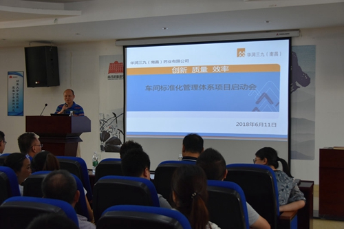6月11日,華潤三九集團(南昌)藥業有限公司《車間標準化管理體系》項目啟動,公司總經理梅總、生產總監王總、管理部總監郭總及公司中基層管理者、華潤三九運營中心劉經理、優制咨詢副總經理莫老師參加了項目啟動會。