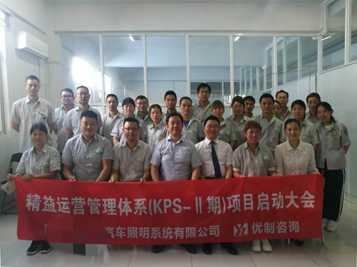 2018年7月12日,江蘇某照明系統有限公司《精益運營管理體系KPS-II期》項目大會如期舉行,公司總經理卜總、副總經理唐總、制造部陳部長、人力資源黃部長,優制咨詢總監楊老師,項目組核心成員共計30余人出席了啟動會。