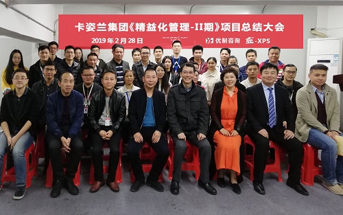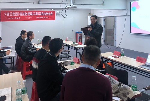 2月28日,國內知名化妝品卡姿蘭集團公司《精益化管理-II期》項目順利結案。公司供應鏈總經理李總、莊副總、各部門負責人、優制咨詢副總經理郭老師和咨詢總監荊老師及項目組骨干成員共計30余人列席參加。