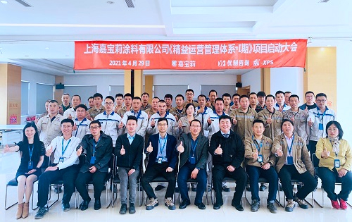 4月29日,國內(nèi)十大藝術(shù)漆、防水涂料品牌嘉寶莉集團(tuán)上海基地隆重啟動(dòng)《精益運(yùn)營管理體系-I期》項(xiàng)目。集團(tuán)領(lǐng)導(dǎo)秦總遠(yuǎn)程出席,上海嘉寶莉基地總經(jīng)理趙總、優(yōu)制咨詢項(xiàng)目總監(jiān)荊老師、生產(chǎn)部、設(shè)備部、人力部等部門經(jīng)理及主管、項(xiàng)目組全體成員共計(jì)40余人參加會(huì)議。