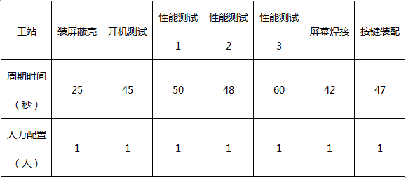 下面我們通過某電子工廠實際案例進一步說明“聚焦五步法”的應用技巧,案例相關信息如下:某生產線各工站周期時間與人力配置見下表: