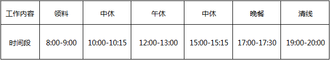 該線標配班組長1人和多能工1人;共計配置9人;該線出勤時間為8:00—20:00;實際安排見下表: