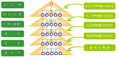 在TPM推行之初都會成立TPM活動小組,并登記注冊。成立的TPM活動小組是與基層組織一體化的TPM活動小集團,這種方式成立的小集團組織是為了持久的開展小集團活動。